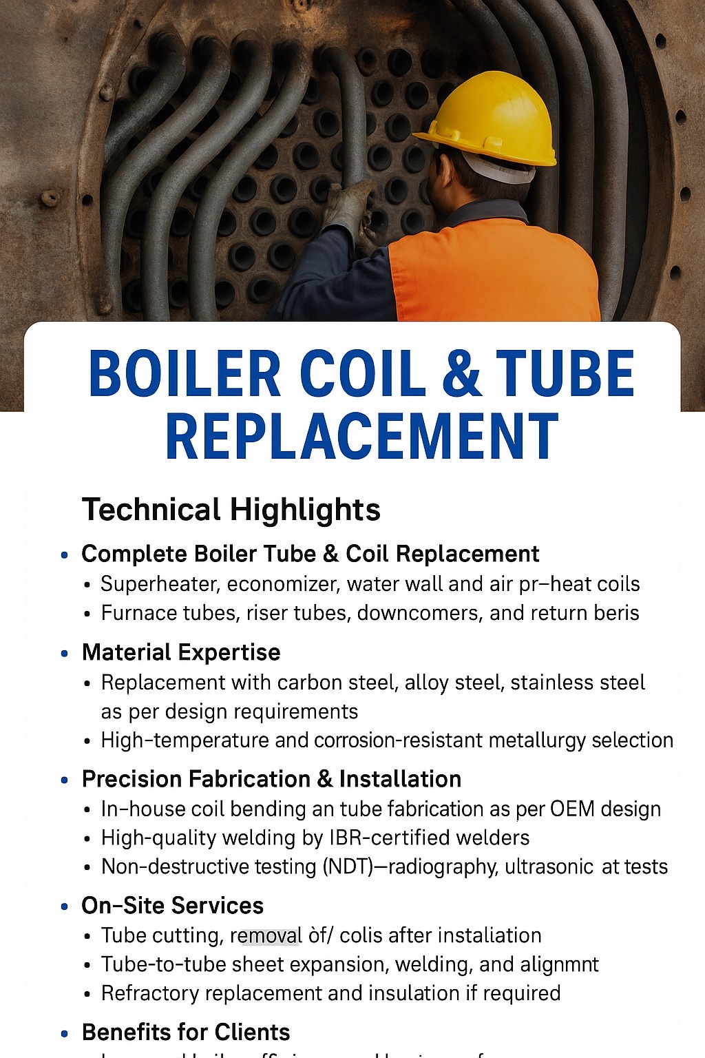 We are certified as Boiler Repairer,Erector and steam & Feed pipe line Fabricator,Erector under IBR (Indian Boiler Regulation) – 1950.